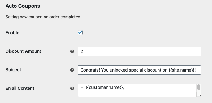 This feature will create a random coupons for each orders per customer.