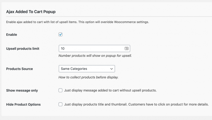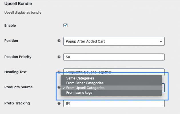 Để setup upsell sản phẩm theo category hay tag, bạn lựa chọn trong Product Source như hình bên dưới