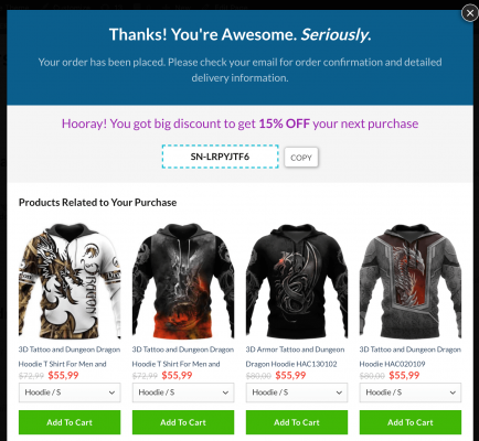 Khách hàng sẽ nhận được thông báo ở page thank you như hình bên dưới, đồng thời họ cũng sẽ nhận được 1 email với nội dung là mã discount