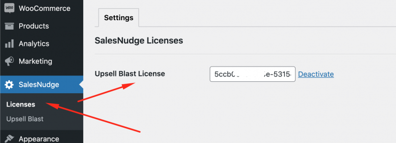 Please go to Salesnudge > License then fill out your license for plugin.